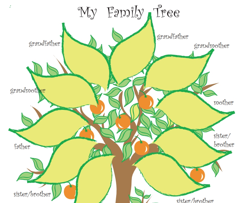 發下學習單請學生填上自己家庭成員的英文名字,或是發下空白紙,讓學生們發揮創意,畫出屬於自己家的一棵樹!